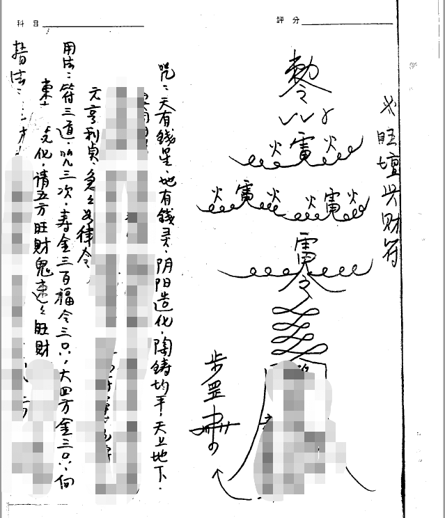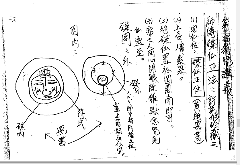 大罗天仙护身咒,旺坛兴财符,白莲教护身符,王天君金刚指,钉脚符咒(古传秘法),天罗地网符,埔里山伯英和合符,天雷斩鬼符,神坛兴旺符,都天法主五雷指,师傅碟仙正法,梨头符,招财符,求运符,道士符仔仙千金不传指法等