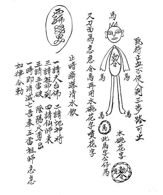 止肚痛花字 止血花字 治火水伤花字 化骨咒 藏魂咒 饮符水咒 安胎止痛 治无名肿毒 勅米救饥 化骨花字 飞符止血 止暗痛 医毒疮咒 消肿花字 防人加害 藏魂咒 制夜盗小人 止血符 治牙痛钉牙咒 煨鸡蛋治发冷 水碗花字 千杯不醉花字 治中邪风花字 治邪封门花字 肚痛花字 治晕倒花字 太上老君咒 华光咒 化针花字 化玻璃花字 止牙痛咒 飞沙掌花字 行夜路花字 治鬼写咒 发热花字 烧香念咒 写符口诀 二十二套三七教符 坛面香炉铁板花字