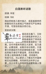 此方出自隋唐时期莲花派五毒门,又称红散、拍花散,为古代修炼房中术之人专用,它的出现为修炼者提供了寻找佳人的便利,也给当时那些香闺娇女一恐畏。古代中国未列第五大发明,实乃遗憾。必要说明,此散并非男科药用。只是更大的激起对方的配合度,凡得此药秘方者切不要滥用,否则后果自负!吾上祖有缘得之珍藏,历经数代,传至今日。为让更多人了解古代中国神秘文化的精髓,共同研究古科学之必要,今公众世人非钱财